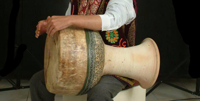 تمبک در هنگام نواختن ،به طور افقی روی ران نوازنده نشسته قرار می گیرد