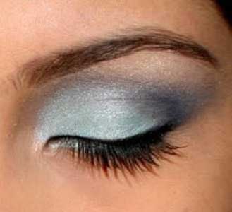 الف)سایه ی نقره ای به تنهایی. یا پس از زدن سایه ی نقره ای برای زیر ساختار رنگهای نیلی وآبی لاجوردی بر روی آن و در ادامه و گوشه ی چشم که چشمان شما را با این رنگ پوست بسیار جذاب و زیبا نشان خواهد داد.