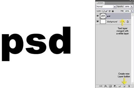 یک لایه جدید اضافه کنید، برای این کار روی آیکون Create a new layer که در قسمت پایین پنل لایه ها قرار دارد کلیک کنید، سپس آن را با رنگ سفید رنگ آمیزی کنید. هر لایه جدید را با تکنیک کلیک و shift انتخاب کنید. سپس به مسیر Menu > Layer > Merge Layers بروید تا دو لایه در یک لایه با هم ادغام شوند.