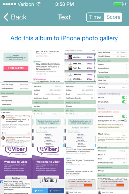 پس از مشاهدهی تصاویر قرار گرفته در هر آلبوم، با تپکردن بر روی عبارت add this album to iphone photo galley، آن آلبوم را به گالری گوشی اضافه کنید.