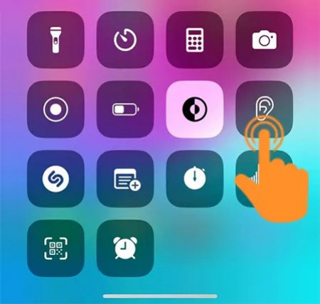 مرحله 3: از سمت راست بالای صفحه نمایش خود به پایین بکشید تا مرکز کنترل باز شود، سپس روی نماد «Hearing» ضربه بزنید و نگه دارید.