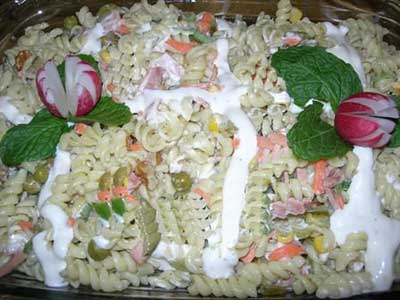 نکته : مواد باید سرد باشند. هرگز به موارد که گرم یا داغ هستند سس اضافه نکنید زیرا میزان سسی که باید استفاده کنید دو برابر خواهد شد و مواد نیز به خوبی با سس آغشته نخواهند شد. پس بهتر است تا سرد شدن ماکارونی بعد از آبکش شدن ، صبر کنید.