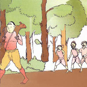 کشاورز فقیری برغالهای را از شهر خرید. همانطور که با بزغاله به سمت روستای خود باز میگشت، تعدادی از اوباش شهر فکر کردند که اگر بتوانند بزغاله آن فرد از بگیرند میتوانند برای خود جشن بگیرند و از خوردن گوشت تازه آن بزغاله لذت ببرند. اما چگونه میتوانند این کار را عملی کنند؟ مرد روستایی قوی و درشت هیکل بود و این اوباش ضعیف نمیتوانستند و نمیخواستند که به صورت فیزیکی درگیر شوند. برای همین فکر کردند و تصمیم گرفتند که از یک حقه استفاده کنند.