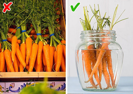 روش دیگر برای تازه نگه داشتن مواد غذایی مثل هویج این است که درون یک ظرف آب بریزید و هویج ها را داخل آب قرار دهید. اگر احساس کردید رنگ آب بعد از مدتی تغییر کرد آب ظرف را عوض کنید.