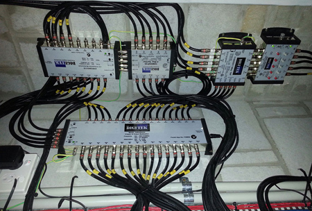 بخش تقسیم: در این جا شاهد قسمت های مختلفی هستیم. اول به تپاف برای تقسیم عبوری نیازمندیم. بعد از اسپلیتر برای تقسیم نهایی استفاده می شود. در این بین از یک سوئیچر هم برای تقسیم سیگنالی که در بخش گذشته تقویت شده برای ارسال به گیرنده ها بهره می گیرند.