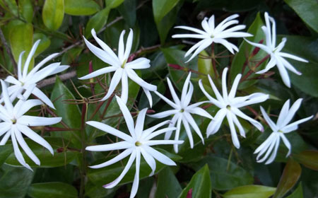 این گیاه بزرگ، پرعطر و پرپشت که به نام یاسمن وفادار یا ستارهای معروف است، در تمام سال از گلهای کوچک ستارهای شکل و برگهایی به رنگ سبز براق برخوردار است. به خاطر رشد آهستهتر این گیاه نسبت به سایر یاسمنها و نیاز آن به آفتاب کامل، برای طاقچه پنجره ایده آل است و با حداقل دمای ۵۰ درجه در گلدان به ارتفاع 30 تا 90 سانتی متر رشد میکند.