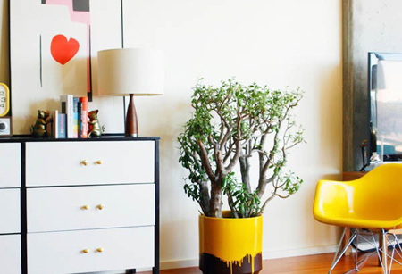 گیاه خانگی با گلدان زیبا و زرد رنگ
